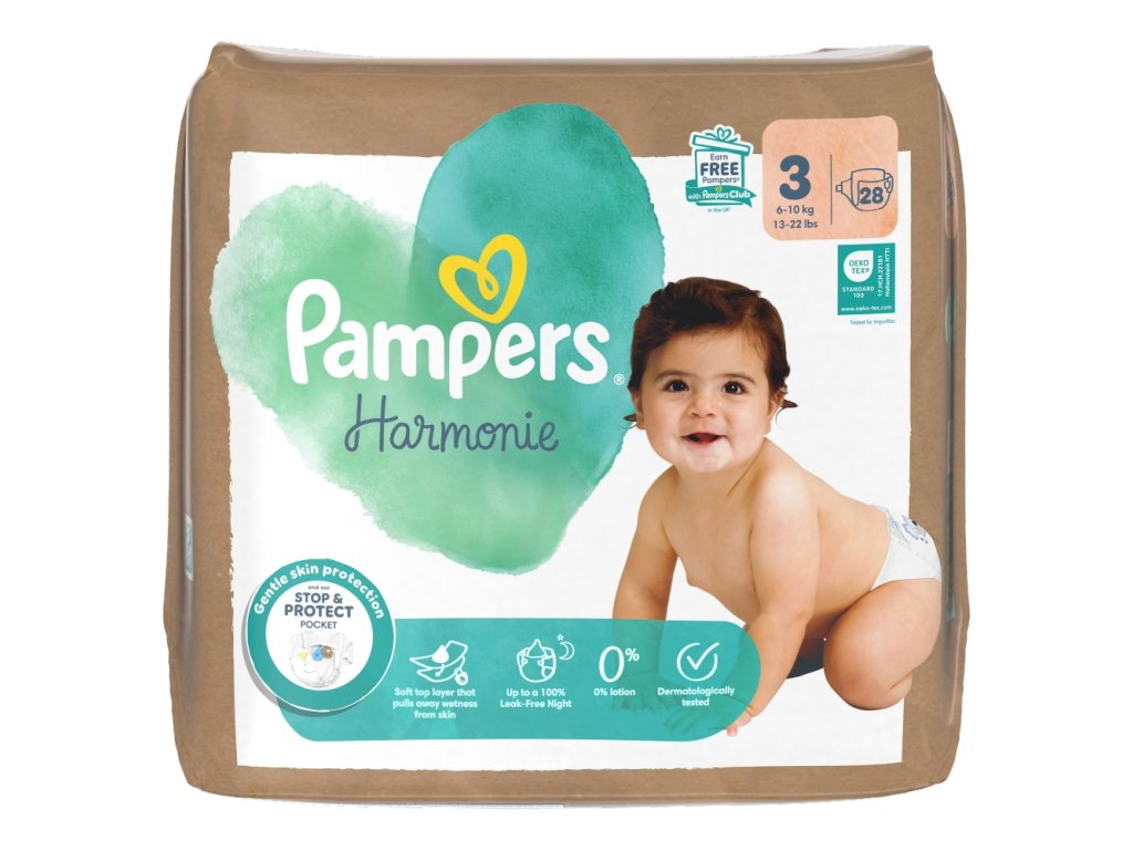 A dry baby is a happy baby. Pampers Harmonie Size 3 disposable diapers will provide your baby with comfort all day and night. They will keep their bottom dry so you can fully enjoy every moment together without worry.