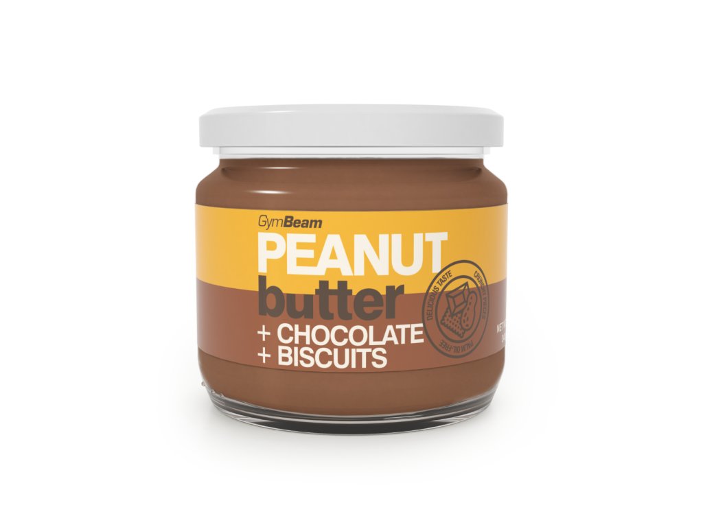 Peanut butter with chocolate and cookies is a delicious spread made from peanuts, milk chocolate and crunchy cookies. This butter is also a source of fiber and protein, which contribute to the growth and maintenance of muscle mass, as well as to the maintenance of healthy bones. It fits easily into the diet of any athlete who is concerned about their protein intake.