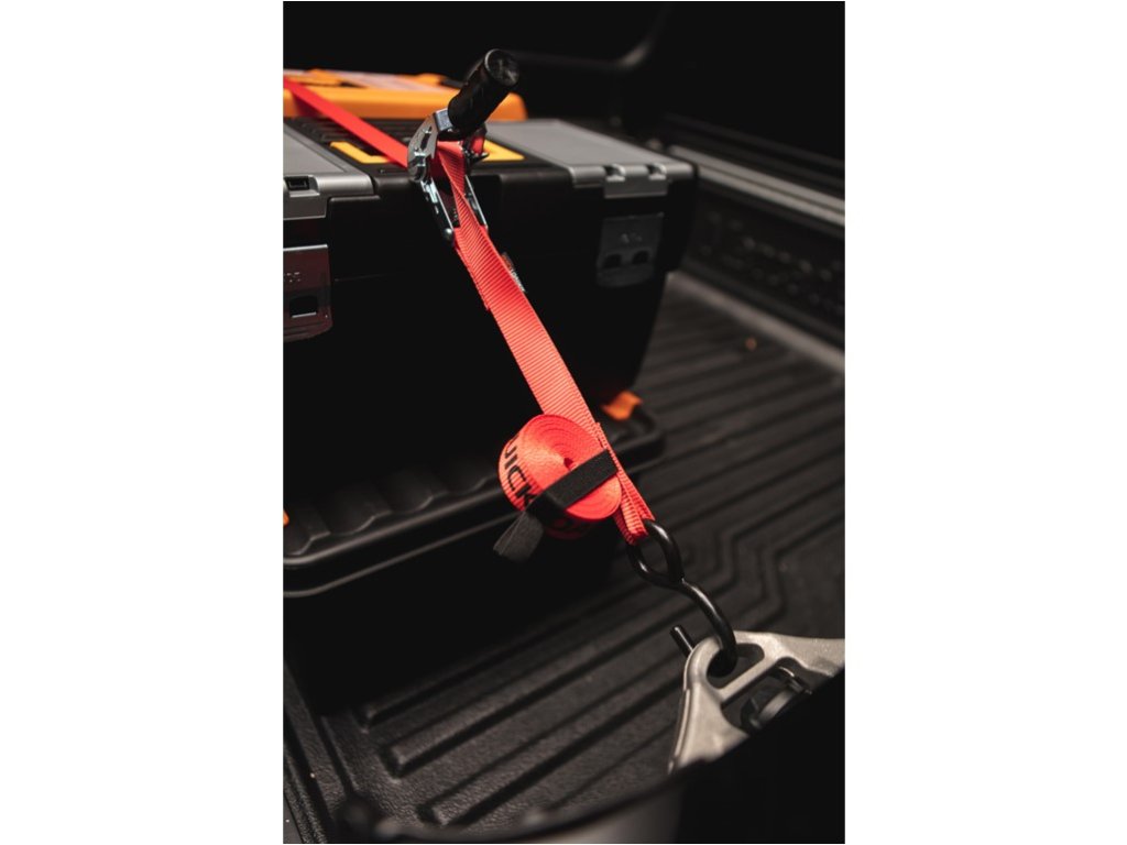 QUICKLOADER® Rebel Hybrid combines technical sophistication and user comfort in a powerful solution for easier loading. With a load capacity of 800 kg and a length of 5 meters, it is the ideal choice for transporting motorcycles, ATVs, sports equipment or small tools. The control handle with an anti-slip surface inspired by mountain terrain provides a secure grip even in more demanding conditions - for example in the rain or with gloves. The practical wing allows for quick and smooth release without unnecessary delay. An interesting feature is the magnetic elements integrated directly into the hook. Thanks to them, the system does not tangle during storage and remains stably attached during use - which greatly simplifies handling. All metal parts are treated with a sandblasted surface, which effectively protects against corrosion and wear even during regular use in the field. This model will appeal not only with its functionality, but also with its modern design. A great choice for those looking for reliability, practicality and aesthetics in one.Additional parameters