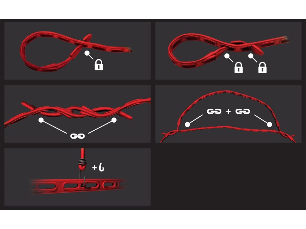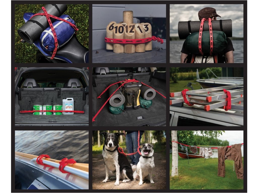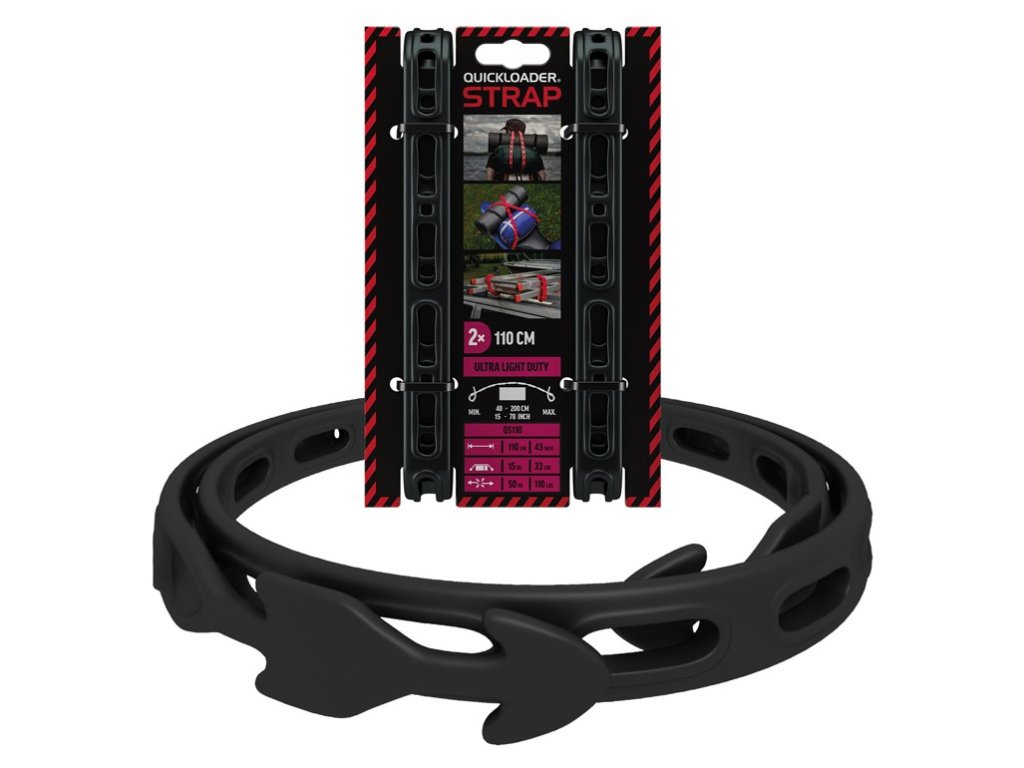 QUICKLOADER Strap is an award winning, patented and completely new and unique solution for all your small tie down needs at home and on the go. The strap has no metal parts which means no scratching, damage or injury. It will not crack or harden and is flexible. No hooks, no scratches, no injuries Infinitely linkable Lock or double lock 1001 uses anywhere Heavier loads PAH freeAdditional parameters