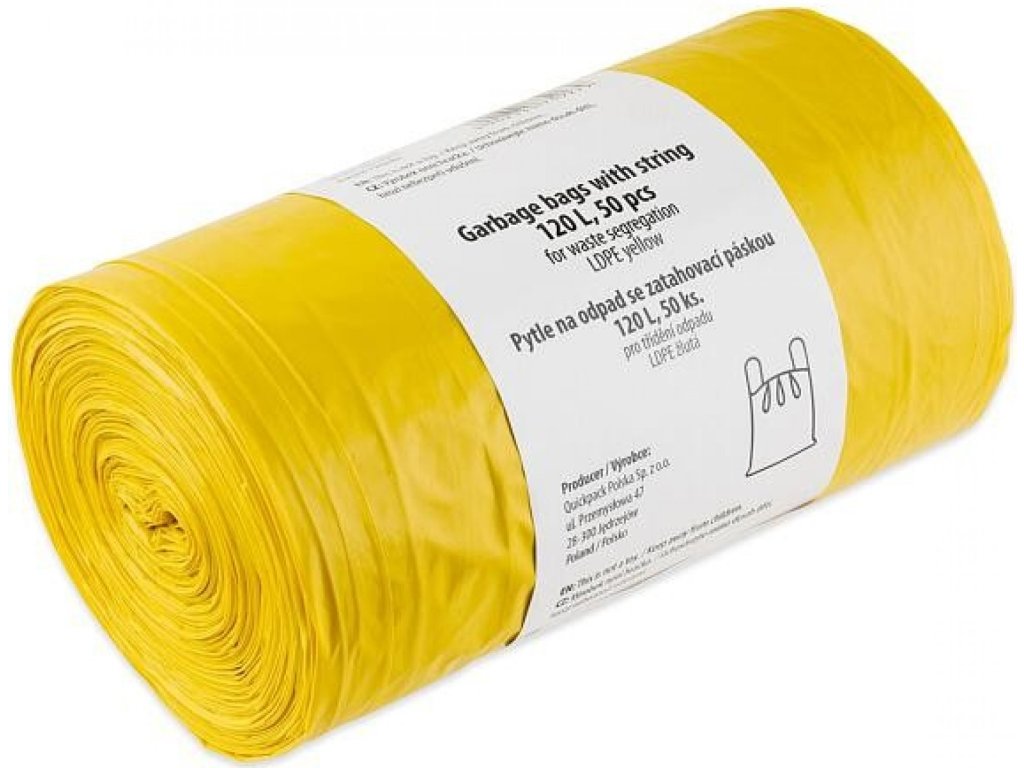Quickpack retractable waste bags 120 l 28µm 50pcs yellow