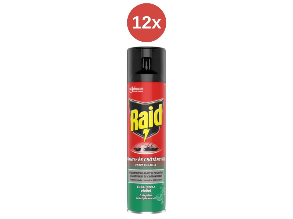RAID RUNNING INSECT SPRAY WITH EUCALYPTUS OIL 12x400 ML