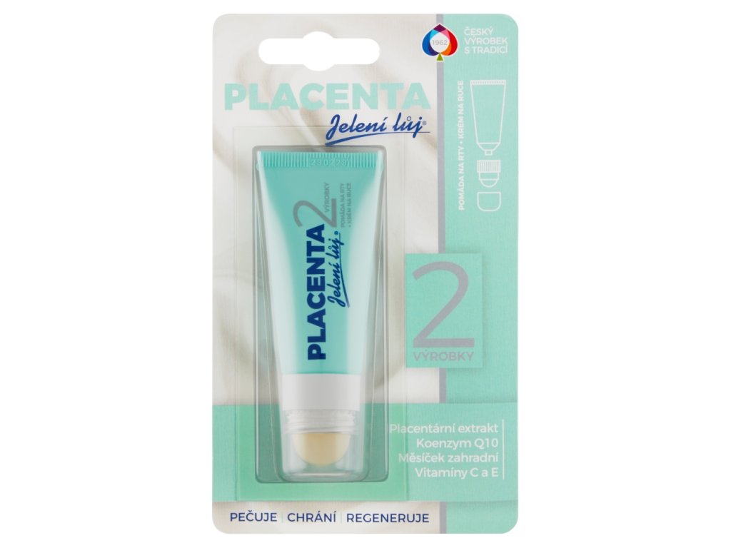 Placenta 2in1 Lip Balm and Hand Cream is a traditional Czech product, which is made according to a unique recipe with a highly effective complex of substances. Placenta Lip Balm perfectly regenerates, soothes and moisturizes the lips. Contains placental extract and lanolin. Placenta Hand Cream is intended for everyday hand care. It regenerates, soothes and provides the skin with the necessary nutrition. It is ideal for cracked hands. Nourishing, spreads easily and forms an invisible protective film. Placental extract contributes to the natural process of cell renewal and, together with marigold, works to revitalize the skin and soothe it. For use on lips and hands. The package contains 20 ml.