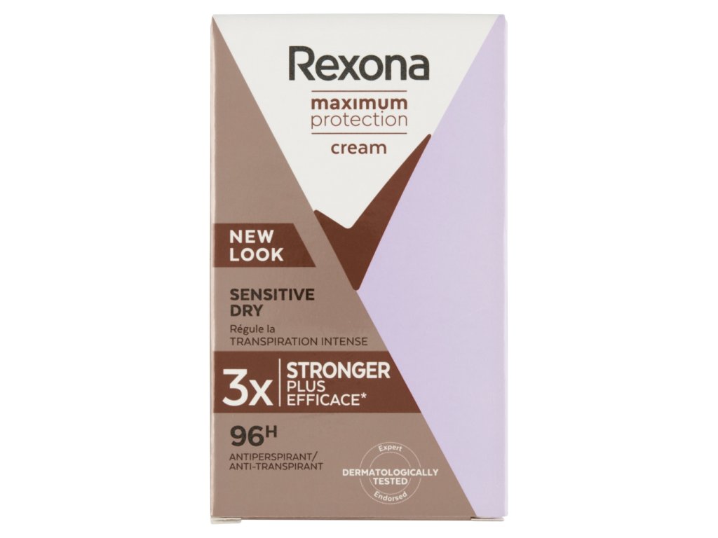 Rexona antiperspirant cream maximum protection Sensitive Dry is the most effective antiperspirant from Rexona. Its creamy consistency not only ensures easy application, but also takes care of dry underarm skin , as it absorbs excess sweat. For perfect results and the highest effect, it is recommended to use Rexona maximum protection Sensitive Dry antiperspirant cream in the evening, because during the resting period of the sweat ducts, the active ingredient TRIsolid can be most effective and its effect will not be canceled even by a morning shower.