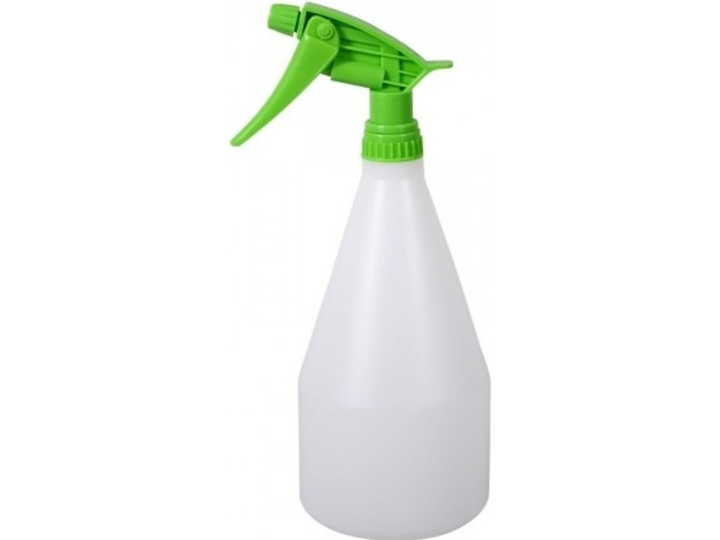 Plastic sprayer with a storage container in the shape of a wider cone. Suitable for applying water, fertilizer or chemical spraying indoors and outdoors. Volume: 1l.