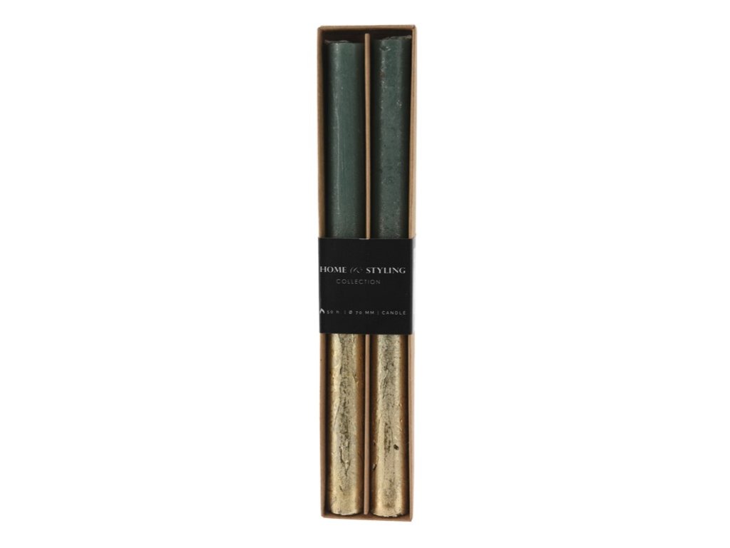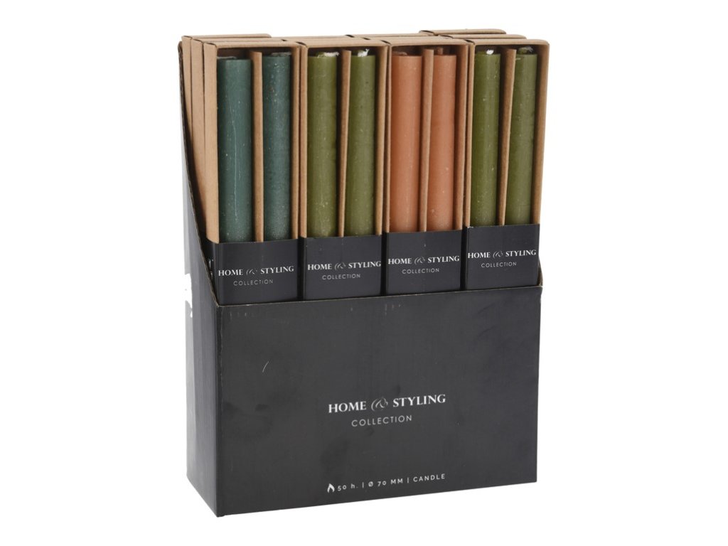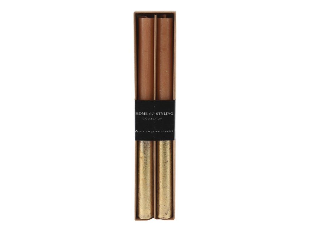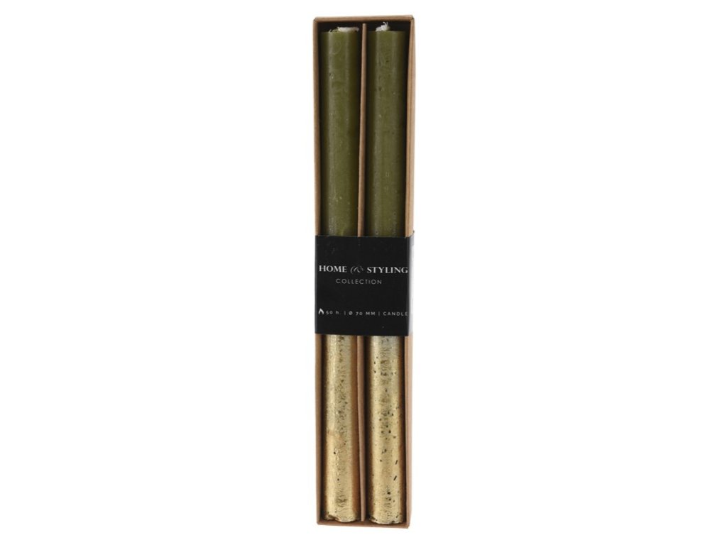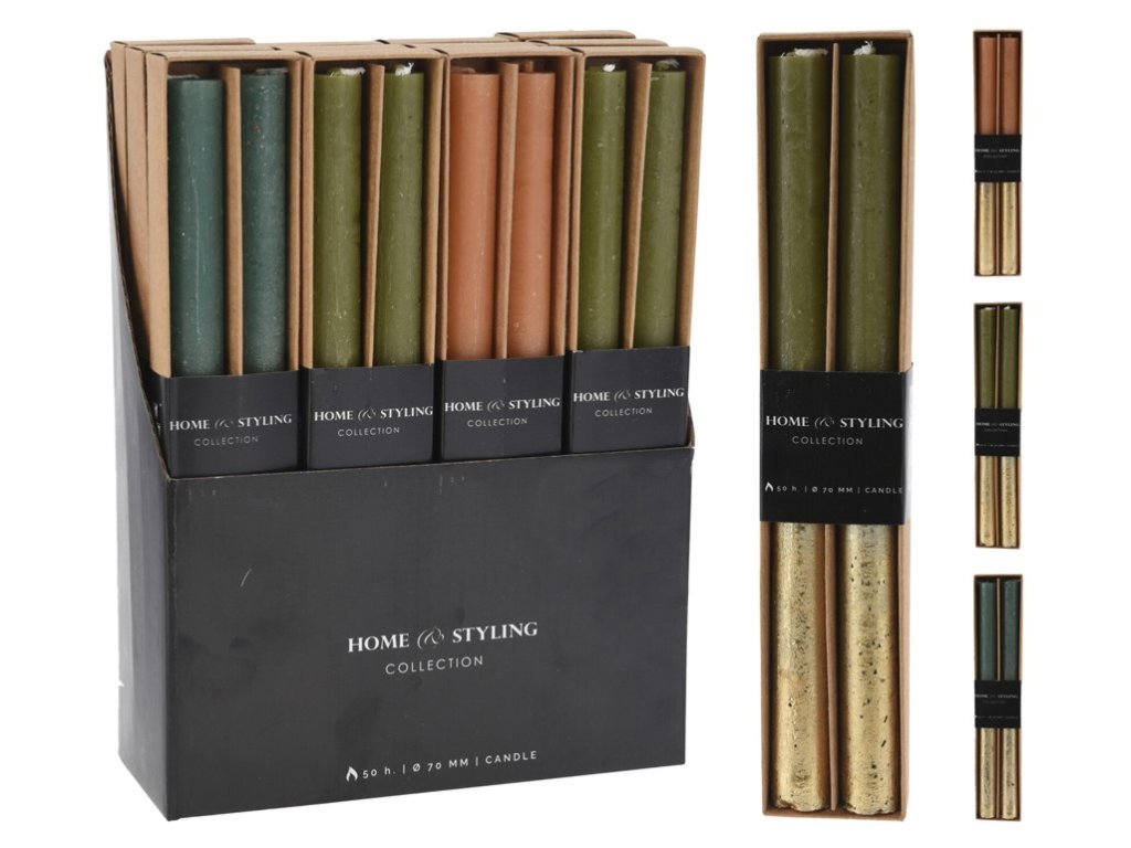 Rustic conical candles 2 pcs – 21x250 mm, metallic, mix of colors