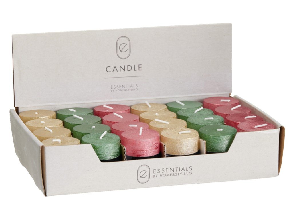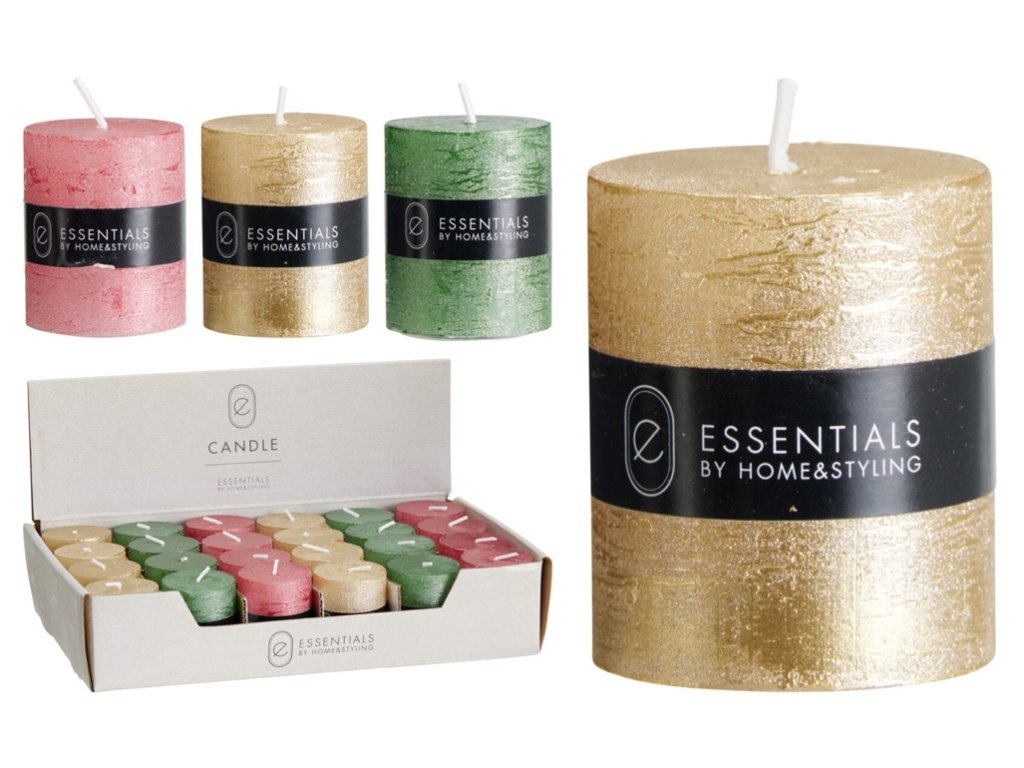 Compact rustic cylinder-shaped candle with a metallic finish. Due to its size, it is suitable for smaller candlesticks, holiday arrangements or as part of a gift decoration. The goods are delivered in a mix and it is not possible to choose a specific design.Additional parameters