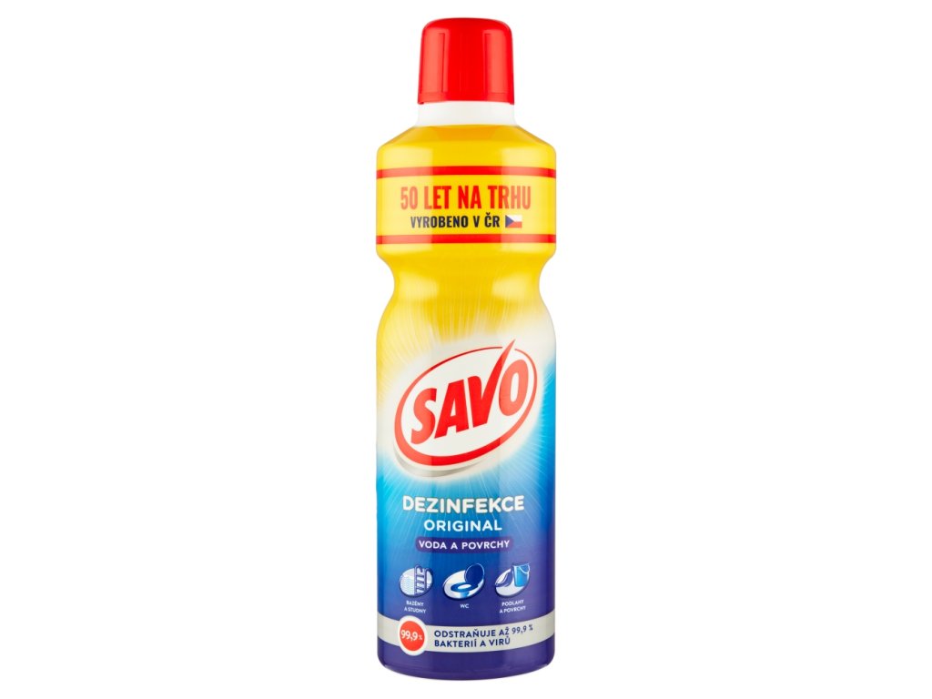 Savo Original liquid disinfectant — an effective product for disinfecting water (swimming pools, wells) and surfaces. It reliably kills bacteria, viruses, algae and fungi. SAVO Original kills germs, bacteria and viruses (including HIV and HBV), algae and lower fungi, and removes odors. It stands out for its exceptionally high purity, long warranty period and unique ecological value, for which it is approved for disinfecting water in swimming pools and, as the only one, for drinking water in wells.
