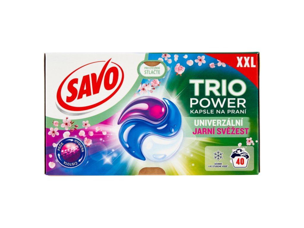 Main features of SAVO Trio Power Universal washing capsules Spring freshness 40 pcs Only the best care for your laundry SAVO washing capsules are designed for all types of laundry They wash all colors of laundry perfectly You do not need to clean or soak large stains before washing, SAVO capsules can handle them without any problems The color of the laundry will not turn gray over time There are 40 pieces in a package of SAVO capsules The manufacturer of this product comes from England S...
