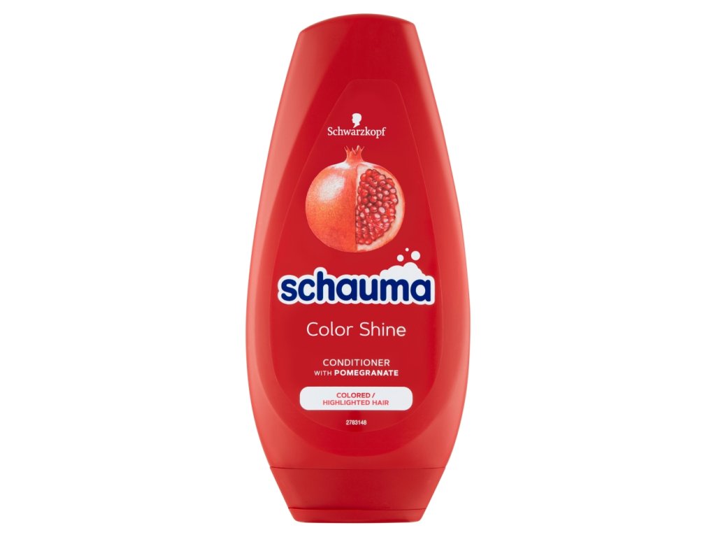 Schauma Color Shine conditioner for colored hair with pomegranate extract. Provides long-lasting color protection and intense shine in a combination of shampoo and conditioner.
