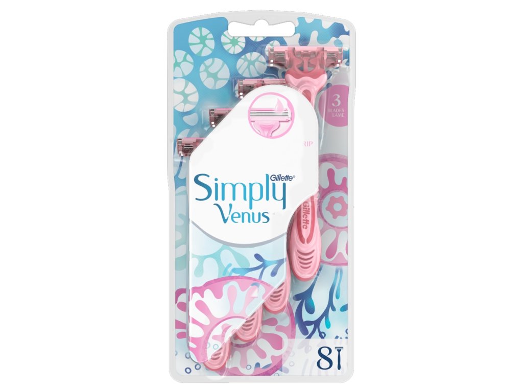 The Simply Venus 3 Plus razors with a pivoting head and 3 blades ensure a smooth shave even in hard-to-reach places.