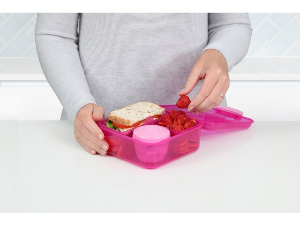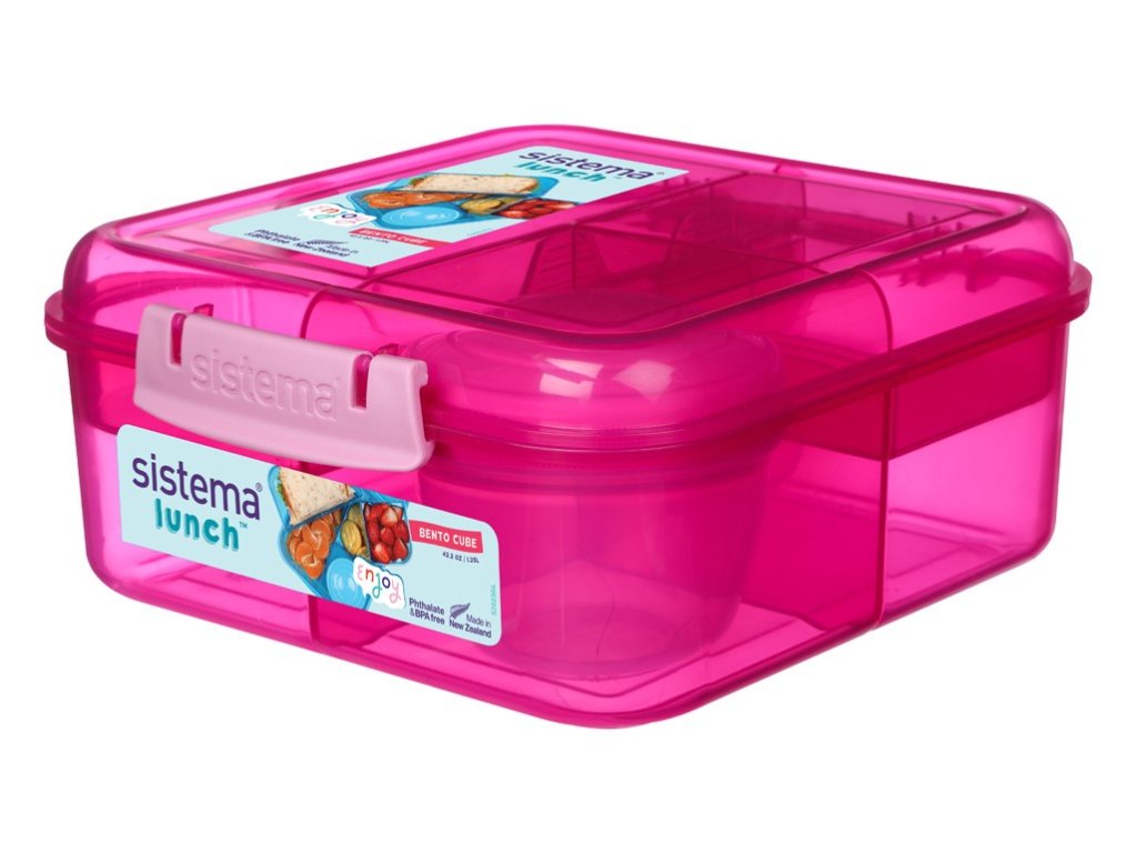 Sistema Divided Lunch Bento Cube Snack Box with Yogurt Container and 2 Trays 1.25 L, Pink