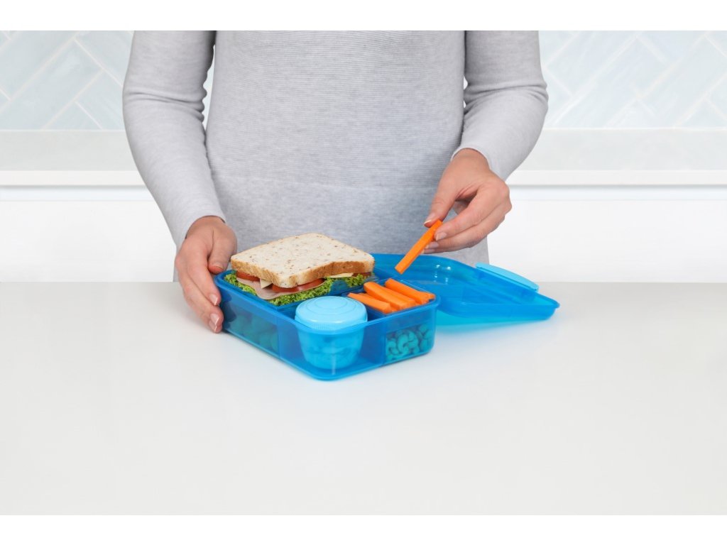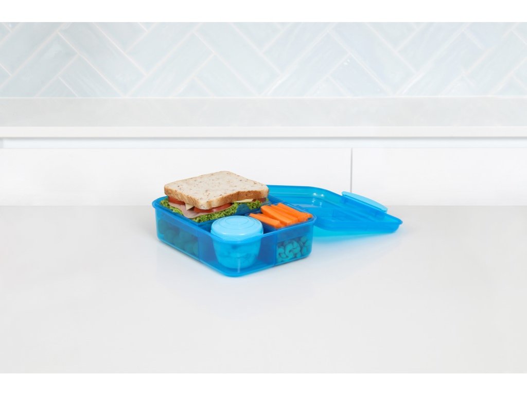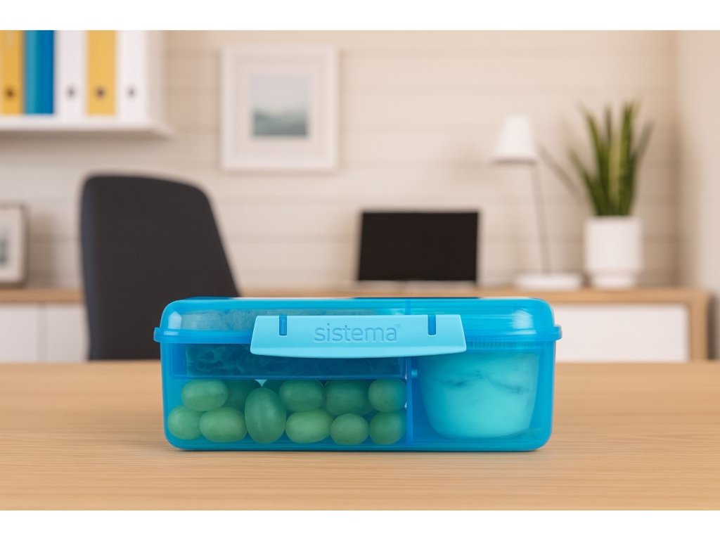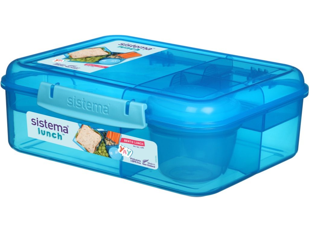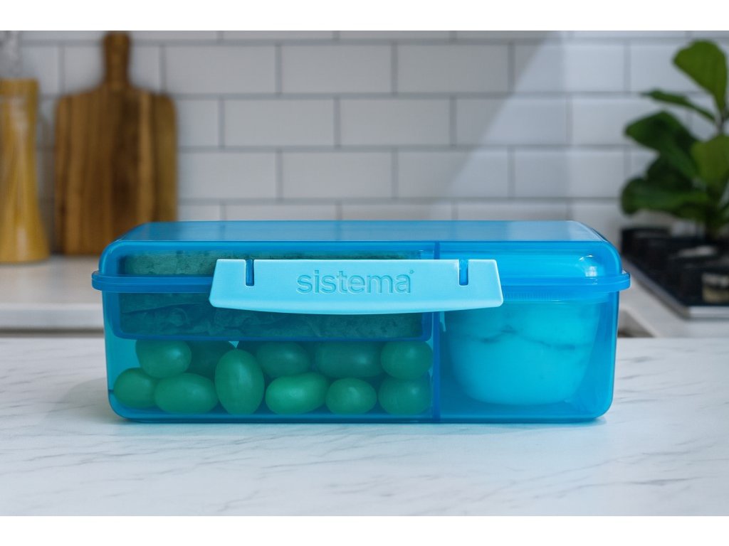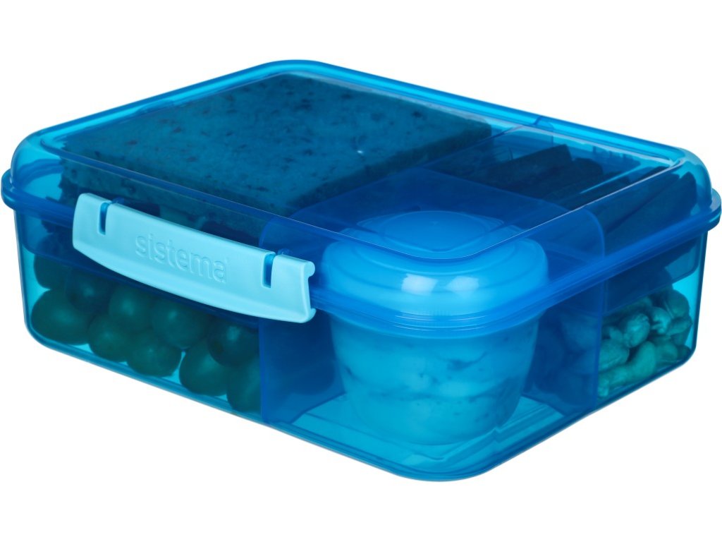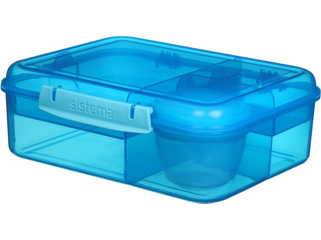 Sistema Divided Lunch Bento Snack Box with Yogurt Container and 2 Trays 1.65 L, Blue