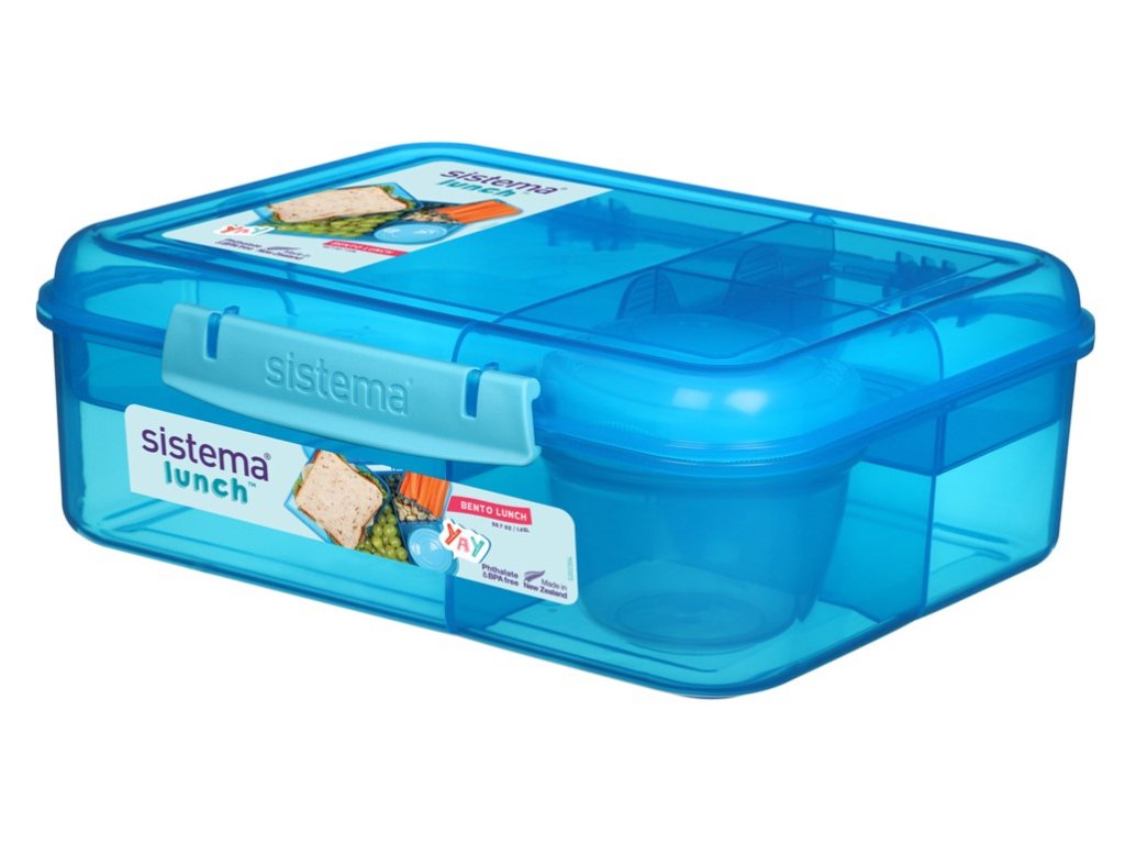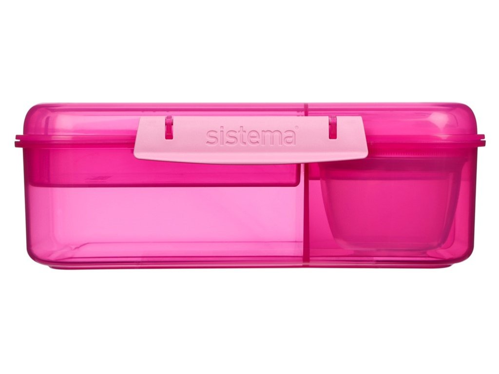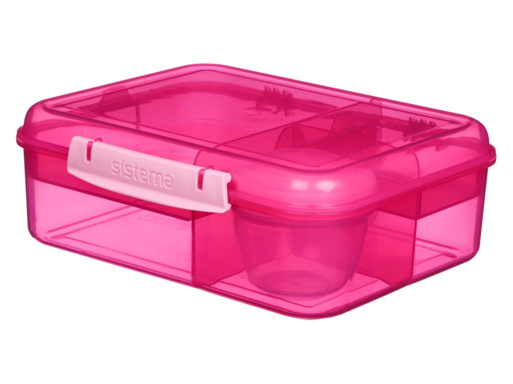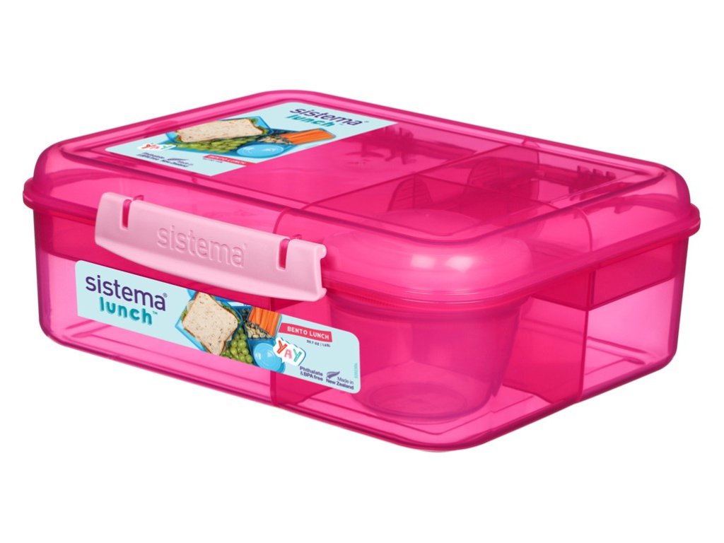 Sistema Divided Lunch Bento Snack Box with Yogurt Container and 2 Trays 1.65 L, Mixed Colors