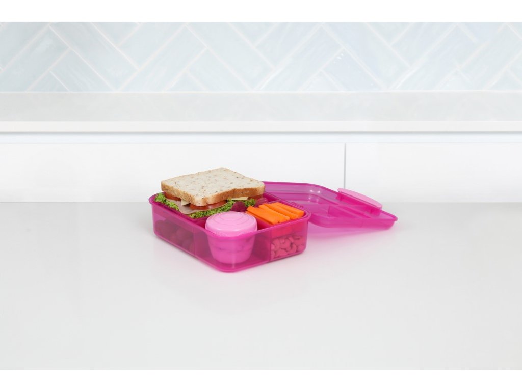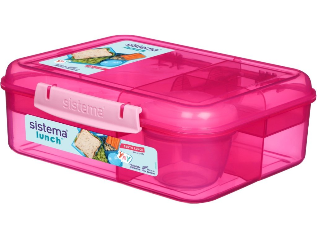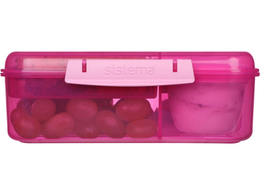 Sistema Divided Lunch Bento Snack Box with Yogurt Container and 2 Trays 1.65 L, Pink