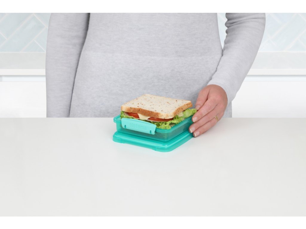 Thanks to its innovative design with modular stackable shape, easy-to-close clips and elastic seal, this box allows you to keep your sandwich fresh and protected until consumption. Benefits: • Ideal for children • Modular stackable shape • Easy to lock: Sistema® clip and elastic sealAdditional parameters