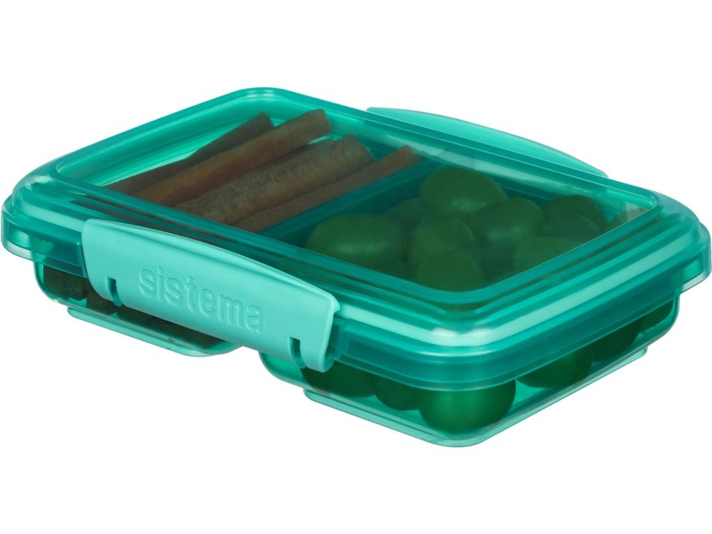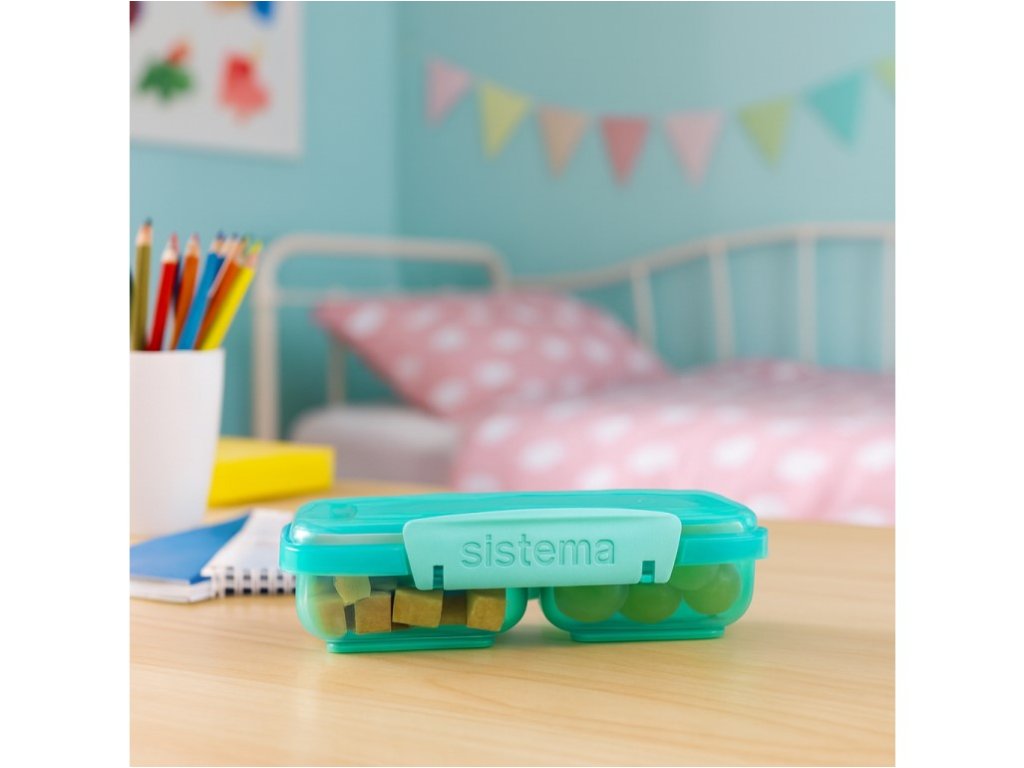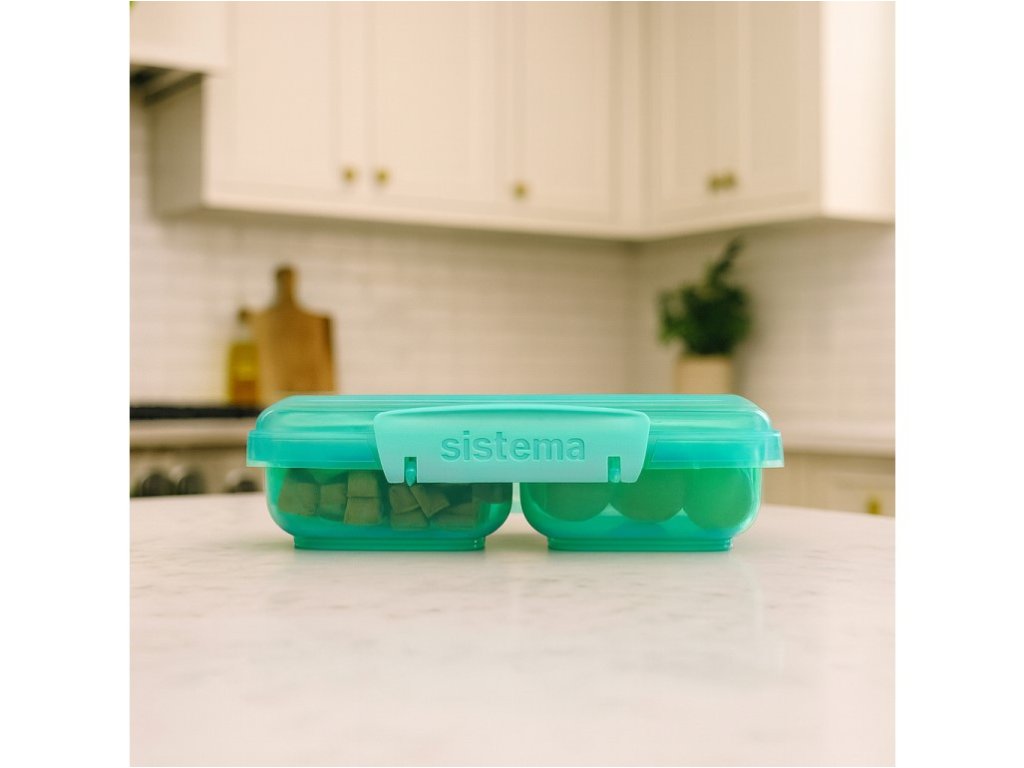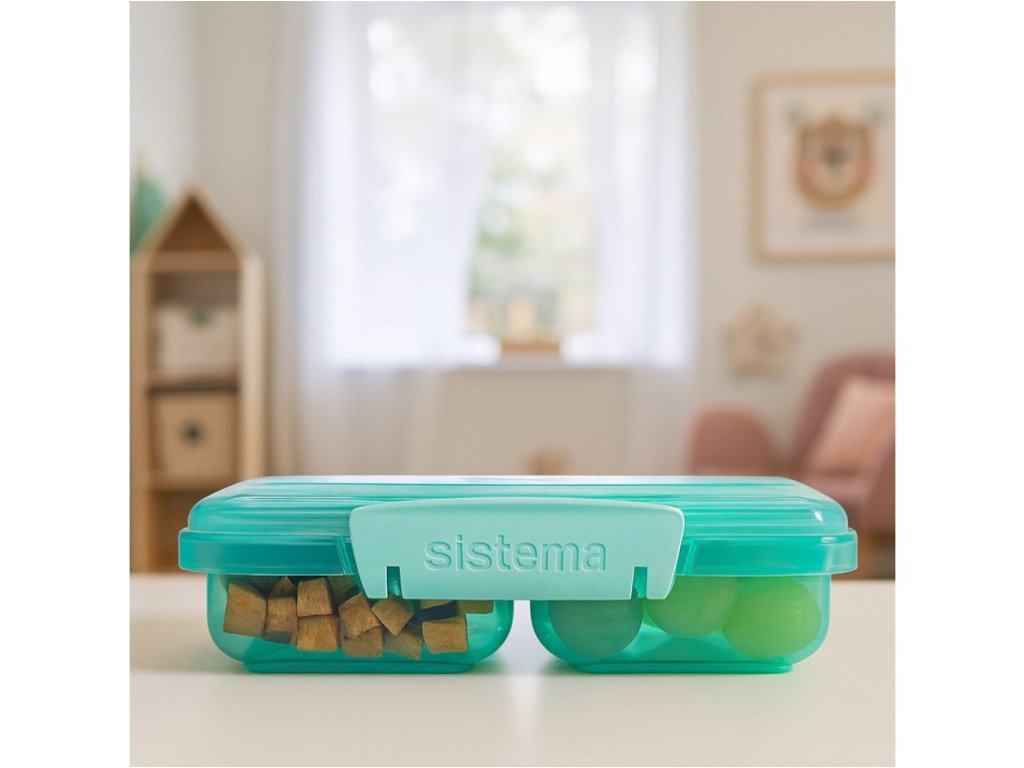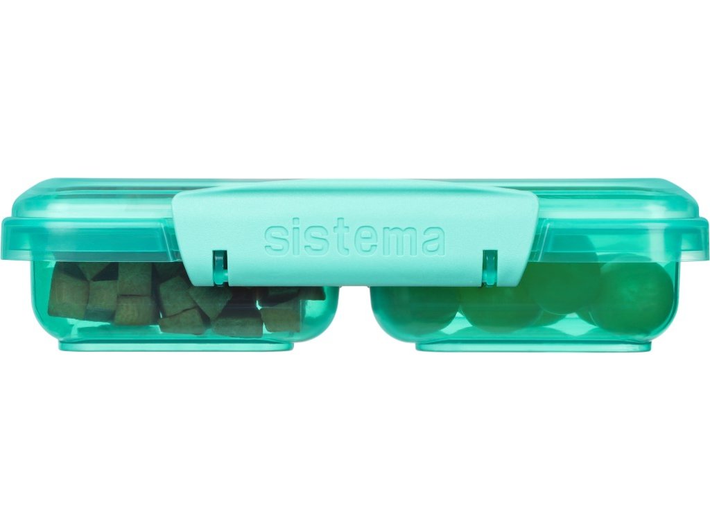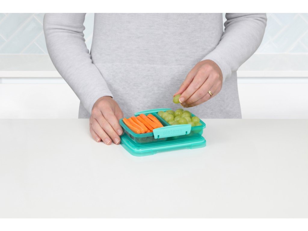 With its separate compartments and modular design, this box is ideal for transporting and storing a wide range of food. With its separate compartments and easy cleaning, this box is ideal for everyday use. Benefits: • Ideal for children • Separate compartments • Modular design • Easy to lock: Sistema® clip and elastic sealAdditional parameters