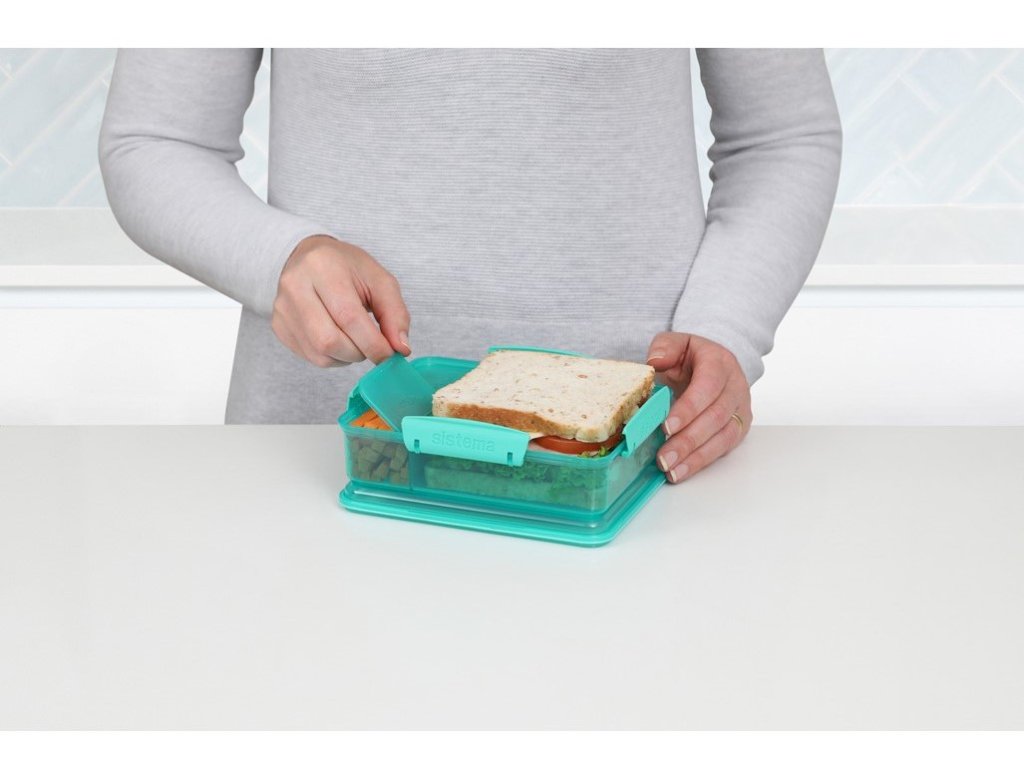 The box is equipped with easy-to-close Sistema® clips and a flexible seal to keep food fresher for longer. With separate compartments, modular design and easy cleaning, this box is ideal for everyday use. Benefits: • Ideal for children • Separate compartments • Modular design • Easy to lock: Sistema® clip and flexible sealAdditional parameters