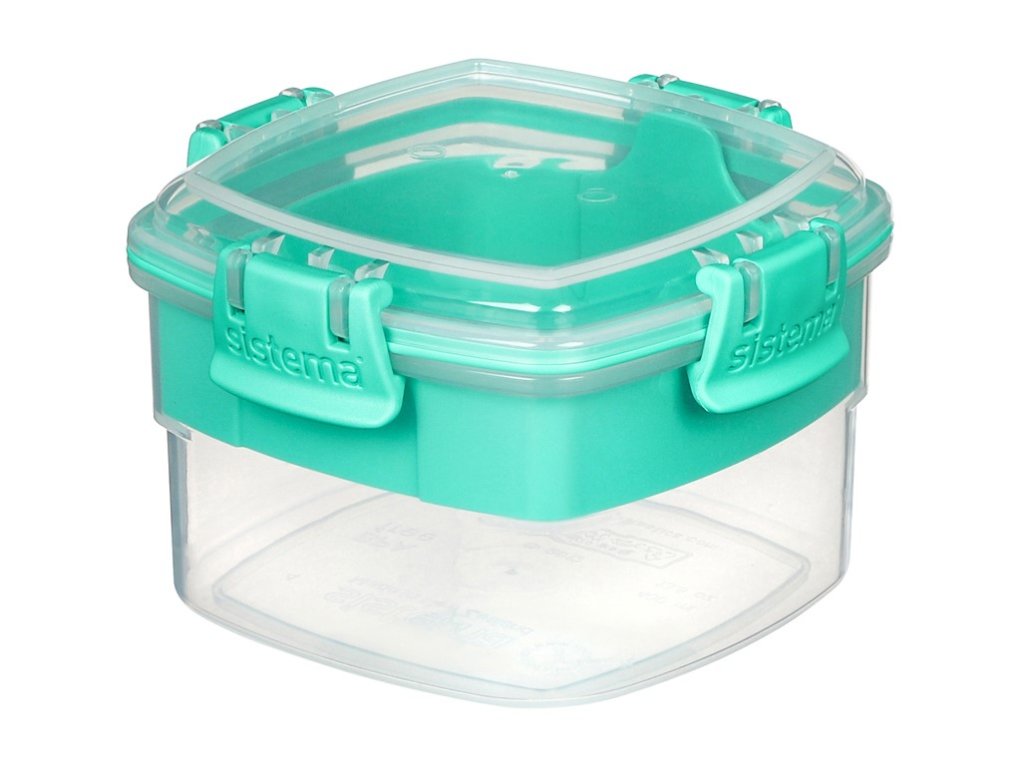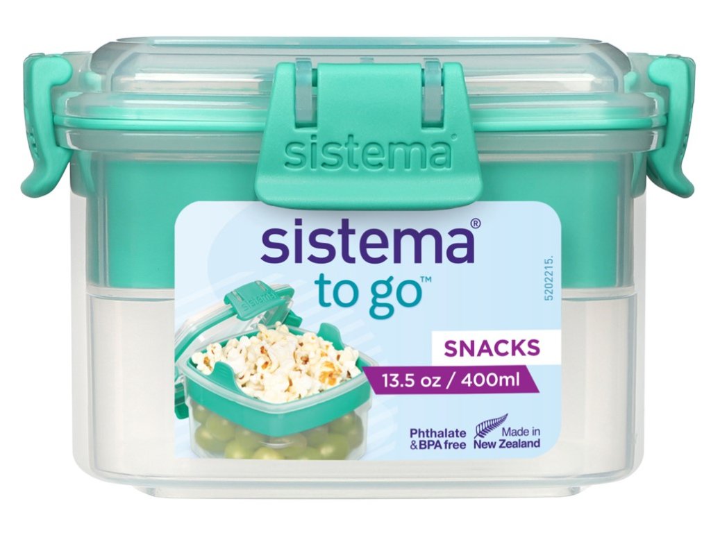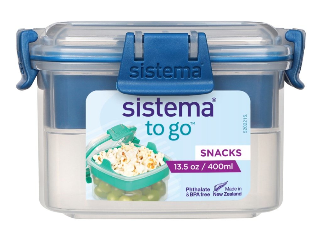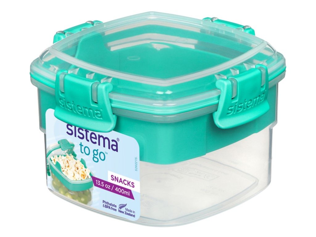 The goods are delivered in a mix. The delivered goods are selected randomly and it is not possible to choose a specific design. Sistema® 400 ml Snacks TO GO™ is a great choice for anyone looking for a practical and stylish way to take a snack on the go. The removable tray allows you to separate different types of food, so you can enjoy a fresh and tasty snack anytime, anywhere. The stackable shape ensures maximum use of space in the pantry, refrigerator and freezer. Easy-to-close Sistema® clips and elastic seal keep food fresh for longer. Benefits: Suitable for children Practical and compact Keeps snacks fresh Easy to clean Easy to lock: Sistema® clip and elastic sealAdditional parameters