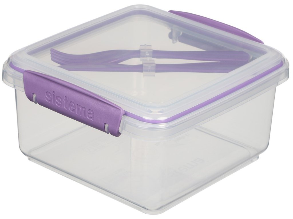 The Sistema Lunch Box with Cutlery 1.2L is ideal for transporting lunch and snacks to work, school or the park, while helping to reduce the use of plastic bags. The integrated knife and fork clip onto the lid, eliminating the need to carry separate cutlery. Benefits: • Integrated cutlery • Easy-to-close clips • Elastic sealAdditional parameters