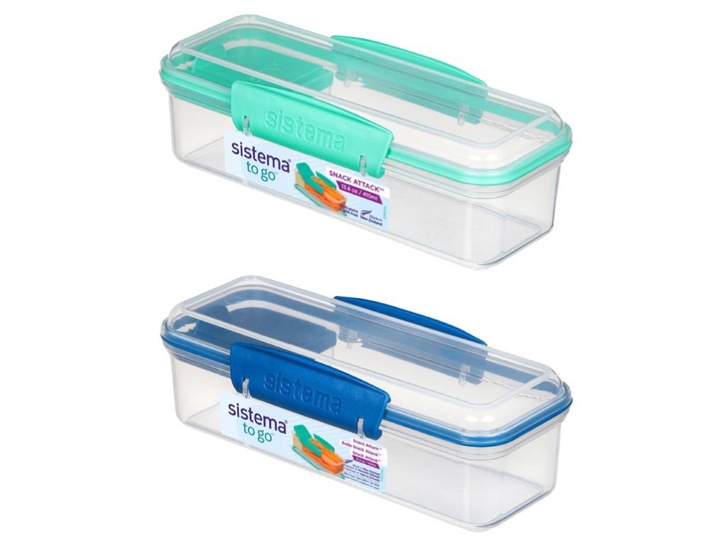 Sistema To Go Snack Attack Snack Box with Separate Compartment 410 ml, Mixed Colors
