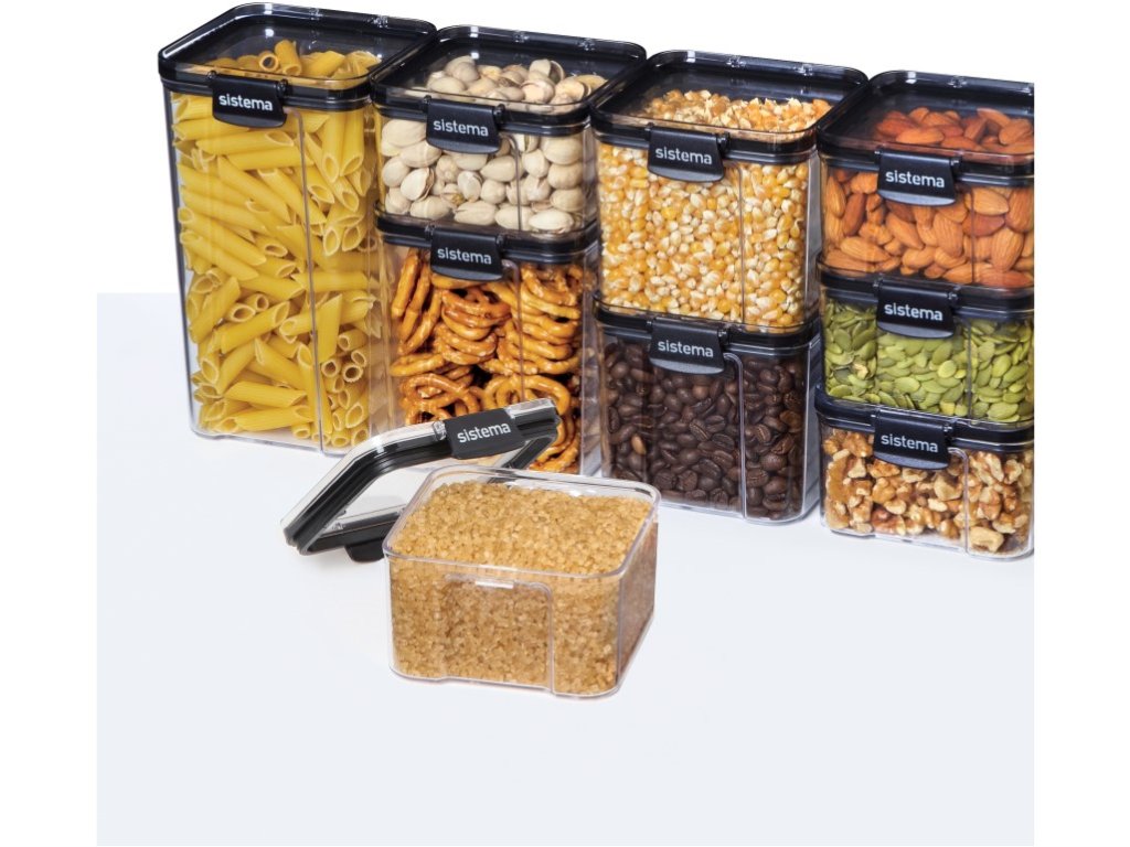 Ultra-clear plastic with glass-like transparency allows for easy visibility of container contents. Durable and unbreakable. Stackable for space-saving and efficient kitchen organization. Easy-to-lock Sistema clips and airtight closure keep contents fresh. Part of the 114 x 102 mm square range.Additional parameters