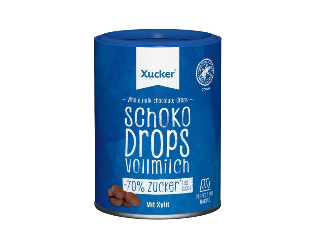 Whole milk Chocolate Drops are pieces of milk chocolate with no added sugar , sweetened only with xylitol. The chocolate pieces are ideal for baking cookies, muffins, cakes, making chocolate icing, homemade muesli, but they are also suitable for flavoring porridge or yogurt.