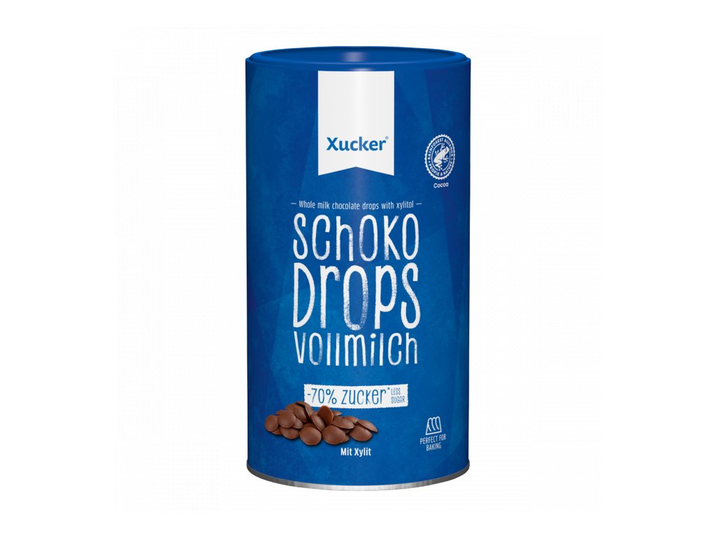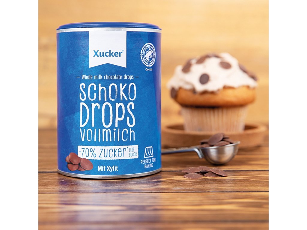 Whole milk Chocolate Drops are pieces of milk chocolate with no added sugar , sweetened only with xylitol. The chocolate pieces are ideal for baking cookies, muffins, cakes, making chocolate icing, homemade muesli, but they are also suitable for flavoring porridge or yogurt.