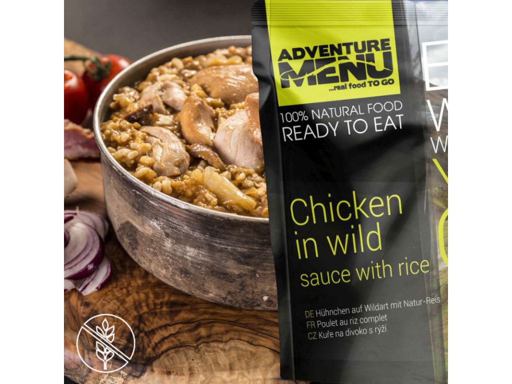 Wild chicken with rice is a hand-prepared dish according to a traditional recipe. It does not contain gluten or any unwanted additives. It is also very simple and quick to prepare. You just need to heat it up and enjoy it. In addition to hiking, you will also appreciate it at home during demanding days when you do not have time for lengthy cooking.