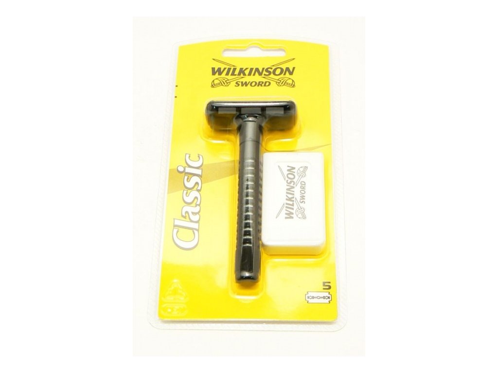 Wilkinson SWORD Classic + 5 replacement blades - a razor for men who like retro style. It has a simple handle design and double edge blades. The head is coated with a PTFE layer, is smooth and is a little wider because it protects the razor and blades from side angles. It reduces friction when shaving. The handle is quite long and has a design that allows a very good grip when shaving. You can use all brands of classic razor blades in this razor.