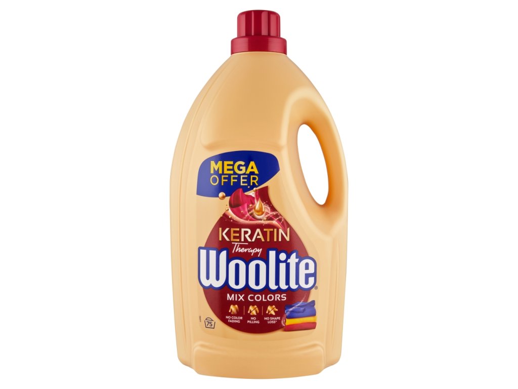 Woolite Mix Colors is a special liquid detergent that effectively washes and protects colored clothes. Thanks to its keratin content, it helps protect textile fibers , makes them soft and prevents wrinkles .